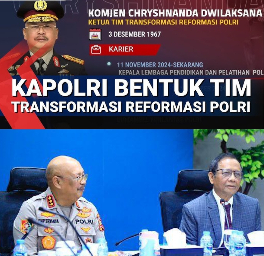 Sementara Kapolri Listyo Sigit merespons cepat dengan membentuk Tim Transformasi Reformasi Polri secara internal pada hari yang sama melalui Surat Perintahnya. Tim ini beranggotakan 52 perwira, diketuai Komjen Chryshnanda Dwilaksana dengan Listyo Sigit sebagai pelindung dan Wakapolri sebagai penasihat. Peristiwa ini mencerminkan Dinamika Politik yang Kompleks di Pemerintahan Prabowo, upaya Reformasi Polri jadi sejatinya adalah ajang uji coba keseimbangan Kekuasaan antara Presiden, Polri, Genk Solo dan Tuntutan Publik.